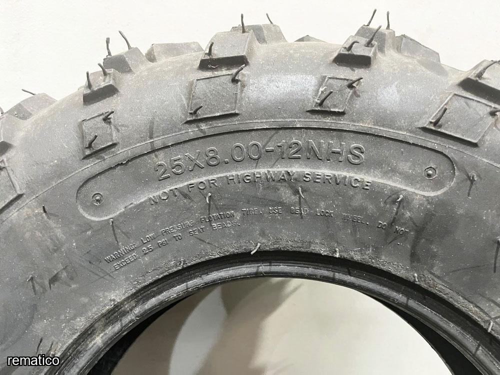 4 llantas para cuadraciclo. CARLISLE AT489, 2 unidades (25 X 10.00-12 NHS) y 2 unidades (25 X 8.00-12 NHS)